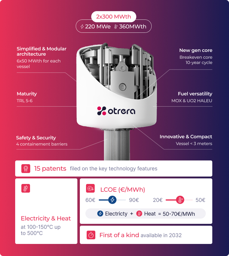OTRERA is a French deeptech company that develops sodium-cooled fast modular reactors (SFRs), capable of co-generating competitive electricity and heat.